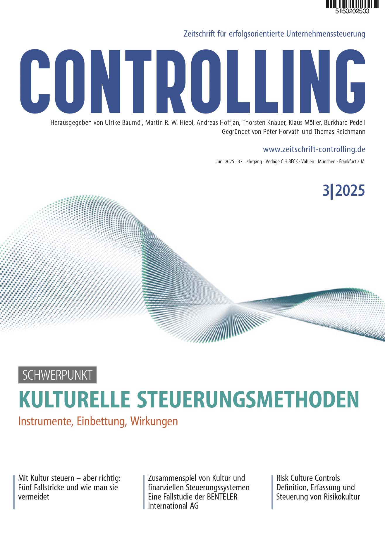 Sie möchten unsere Zeitschrift testen? Dann nutzen Sie unser Probeabonnement. Sie erhalten zwei Ausgaben der „Controlling“ inkl. Online-Zugang zum Controlling-Archiv (für einen Nutzer) kostenfrei. Falls Sie nicht bis zwei Wochen nach Erhalt des 2. Gratis-Heftes abbestellen, erhalten Sie die Zeitschrift im Abonnement (-> Ihr Probeabonnement bestellen).